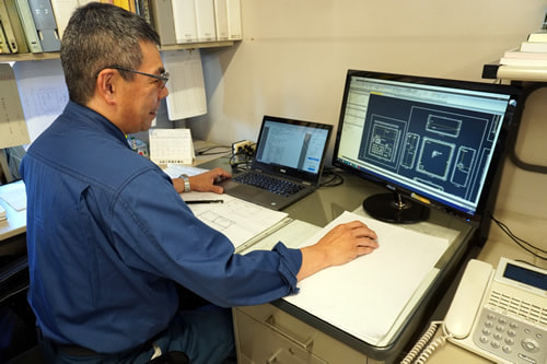 業務内容としては「省力化に関わるシステム制御全般」を扱い、強電及び弱電からソフト開発まで制御に関するあらゆる分野を主業務とし、仕様打ち合わせから見積、設計、資材調達、配線工事、制御盤組立までのサービスをトータルでご提供させて頂いております。